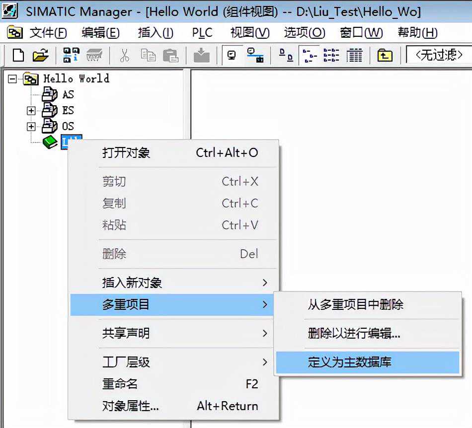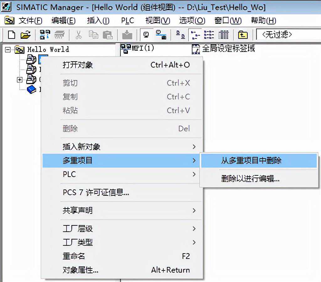 多重项目:是指含有某个自动化解决方案的所有项目和库的文件夹,该解决方案具有一个或多个STEP7项目及(可选)库。一个多项目中的项目可以包含与其它对象相链接的对象(例如,S7跨项目的连接)。其项目结构如下: