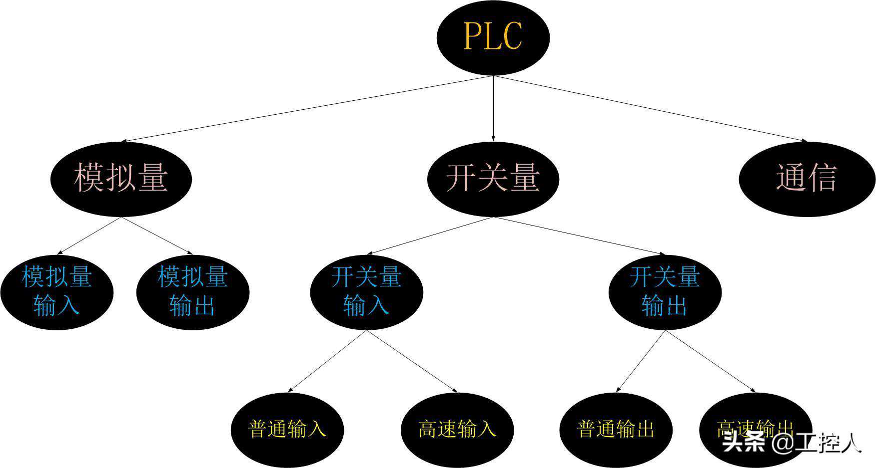PLC的学习大致分为开关量、模拟量、通信这三部分内容,控制的电气元件主要有逻辑开关器件、变频器驱动系统、伺服驱动系统、传感器的控制和数据采集系统。从PLC的角度看有输入、输出、通信系统,输入分为开关量输入如按钮、旋钮、脚踏开关等普通输入,编码器脉冲的高速输入;输出有中继、接触器、指示灯等普通输出,还有控制伺服驱动使用的高速脉冲输出。除了开关量的输入和输出,还有模拟量的输入与输出,比如变频器频率的控制、气阀调节使用的模拟量输出控制,电流信号、温度信号的采集使用的模拟量输入。Plc与一些支持通信设置进行的通信控制,如变频器、伺服、传感器等设备。