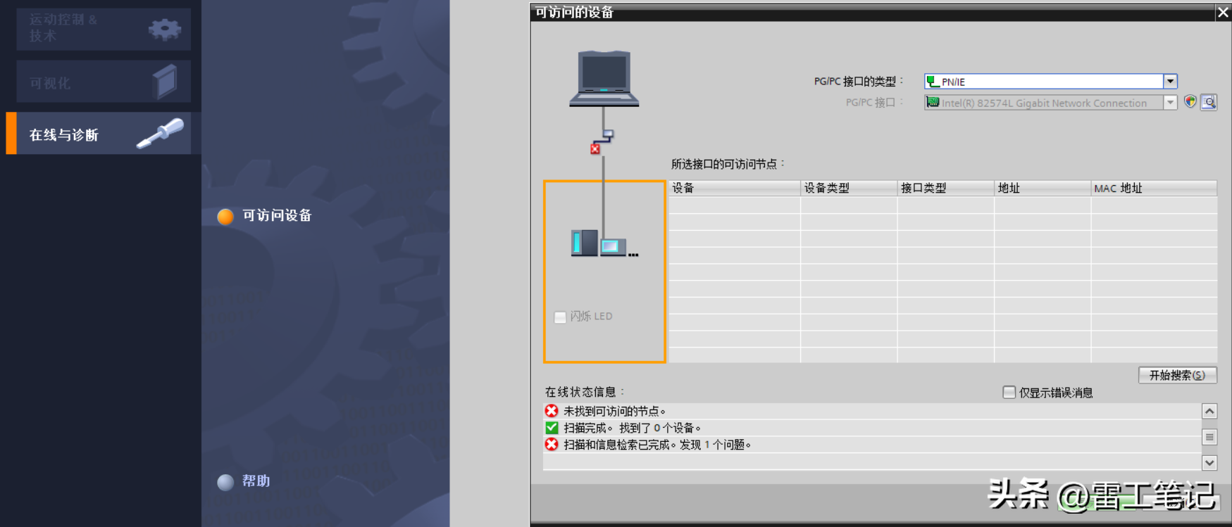 问题描述:在虚拟机内博途在线-可访问设备搜索搜不到PLC,提示未找到访问的节点。