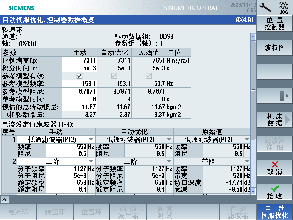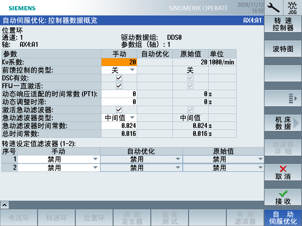组的自动优化。使用测量和伺服跟踪功能,检查伺服优化结果和轴动态特性。