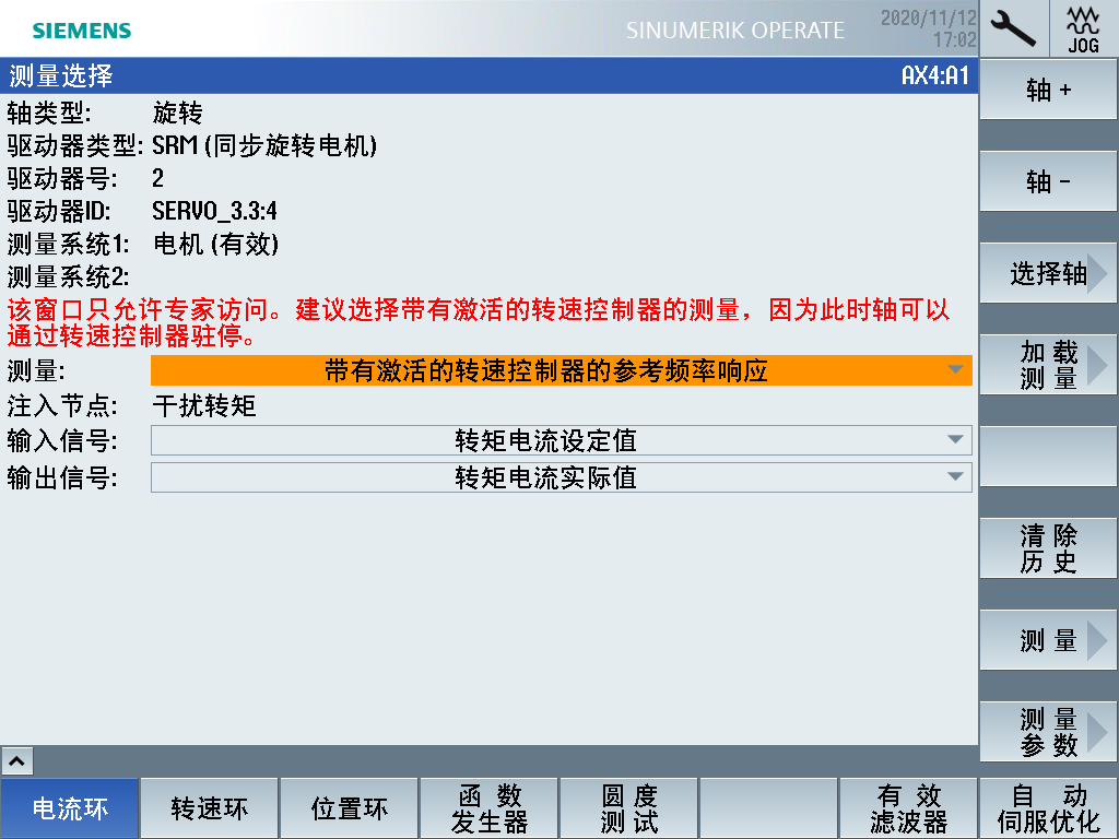 当所使用的电机为第三方电机或直驱(1FN/1FW/1FE)电机时,在正常使用前,必须测量电流环调