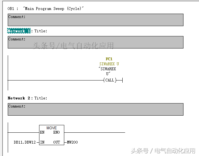 我们看一下FC的Network1,调用FB45,以DB10作为背景数据块,其中IN0为硬件地址,在硬件配置中可以找到(该例子程序是256)。IN1为FB45外部数据的存放位置,该程序是DB11,所以该地址是11,如果是DB12,该地址就是12,其他的格式按照图片所示,不可更改,因为DB11的格式是由UDT9控制的,具体含义不需要理解。