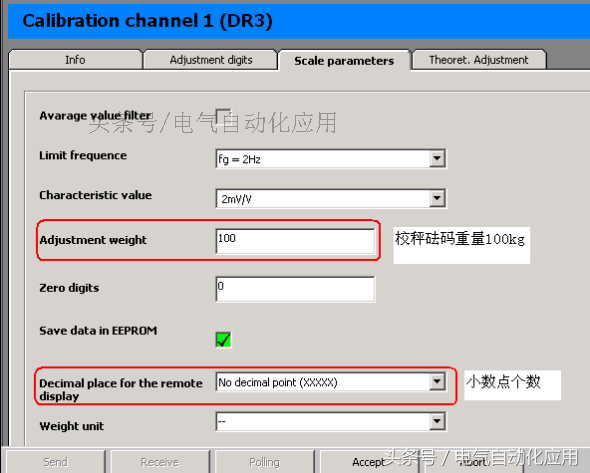 A.传感器灵敏度(Characteristicvalue):在传感器样本或手册上可以查到其灵敏度,称重模块提供三种灵敏度,即1mV/V、2mV/V和4mV/V,选择与传感器实际灵敏度最接近且高一档的数值,如灵敏的为1.5mV/V,则应在SIWATOOL中选择2mV/V