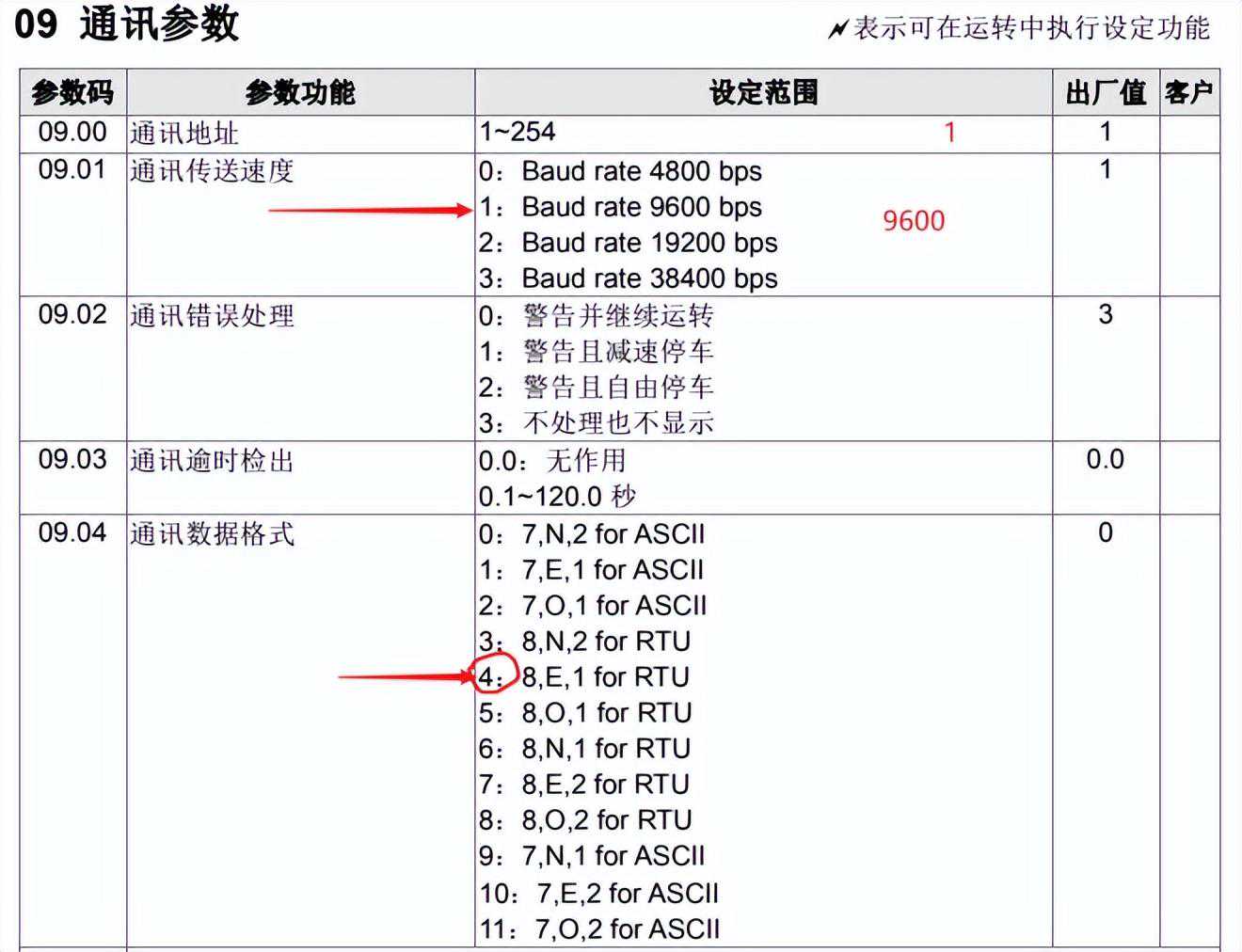 波特率为9600,停止位为1,校验为偶校验,数据长度为8.