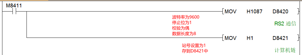 3.H1表示为站号1,存放D8421中储存。
