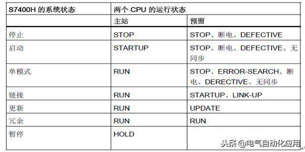S7-400H及CPU的系统状态与运行状态如下表所示: