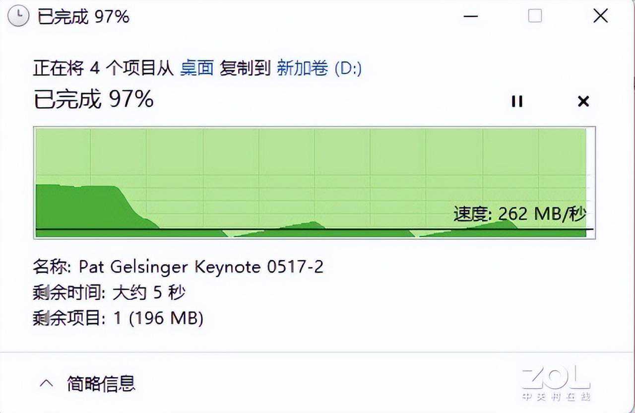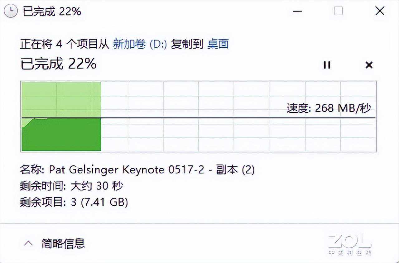 首先是写入测试,其速度达到了262MB/s;然后是读取测试,其实际速度为268MB/s。
