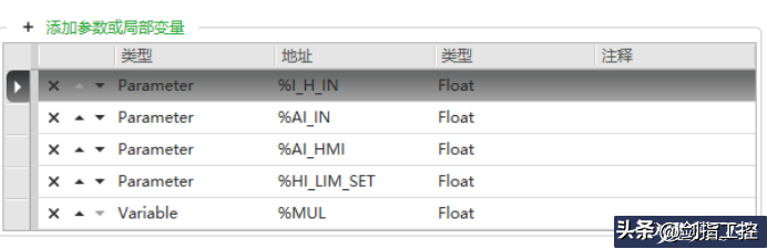 *按一下“添加参数或局部变量”左侧加按钮,添加四个FLOAT类型参数和一个FLOAT局部变量。