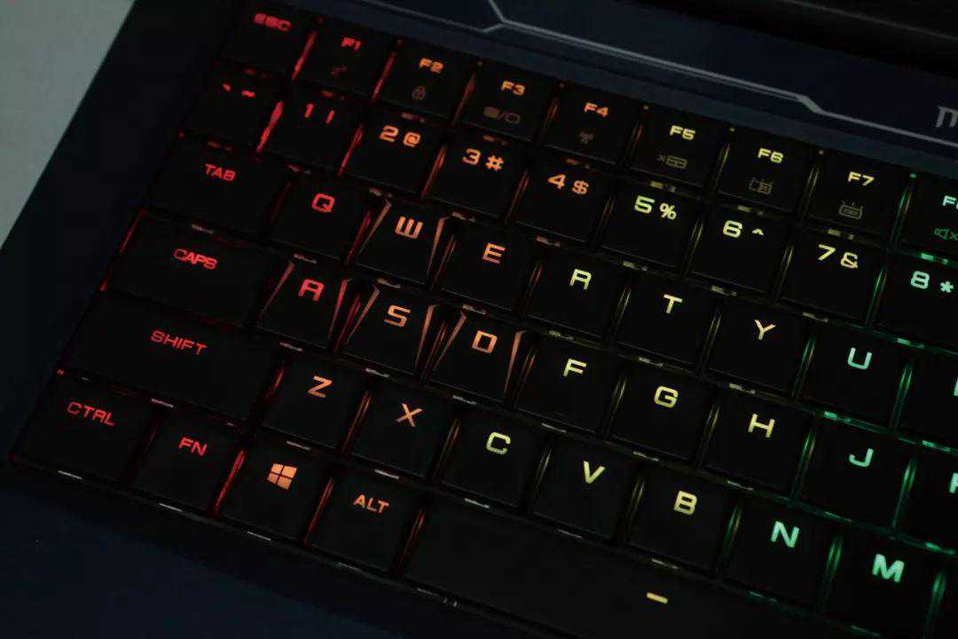 ▲机械师F117-FP7R采用的RGB机械键盘拥有3.0mm键程,支持全键无冲,实际体验力度适中,段落感明显。