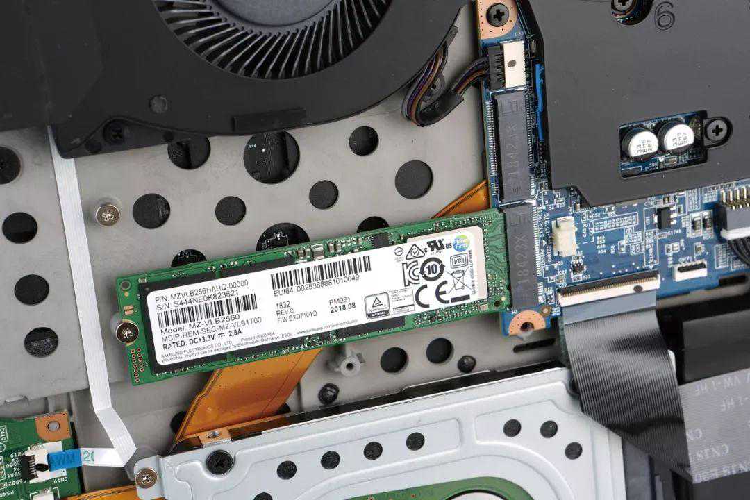 另外,在机身内部,这台机器也为用户自行升级提供了充足的空间。拆开机器后盖可以看到,F117-FP7R和前代产品一样预留了两个硬盘扩展接口以及两个内存扩展接口,用户可自行升级内存或者SSD,而在接口的下方还保留了一个2.5英寸的机械硬盘位,如果想升级更大的硬盘(评测样机自带1TB机械硬盘)也不是难事。
