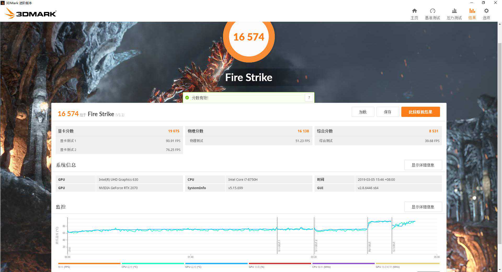 性能实测远超前代产品游戏本上的RTX2070有多强的性能?早在上期的RTX游戏本专题中我们已经得出了结论。不过对于今天这台机器,我们依然充满期待。为了验证这台机器的实际性能,我们首先在游戏模式下通过3DMark来考察这块RTX2070显卡的理论性能,结果令人振奋。