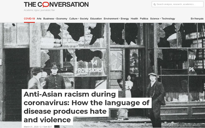 作为一家严肃的媒体,《谈话》在有关历史上借助疾病对华人污名化的报道中指出,“政治家越来越多的种族主义言论,例如唐纳德·特朗普总统对新冠病毒错误使用“中国病毒”一词,通常是种族暴力的第一步。
