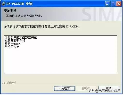 安装300仿真软件的时候提示重启window,同样也是要删除注册表项才能继续安装软件。删除注册表的方法同第2个错误的处理方法。