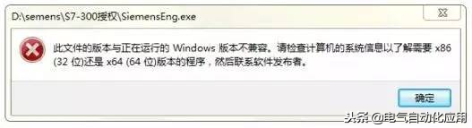 五、我的电脑是win764位的系统,安装好编程软件和仿真软件之后,用中文授权软件进行授权时,出现错误提示为此文件的版本与正在运行的Windows版本不兼容。请检查计算机的系统信息以了解需要x86(32位)还是x64(64位)版本的程序,然后联系软件发布者。怎么解决?