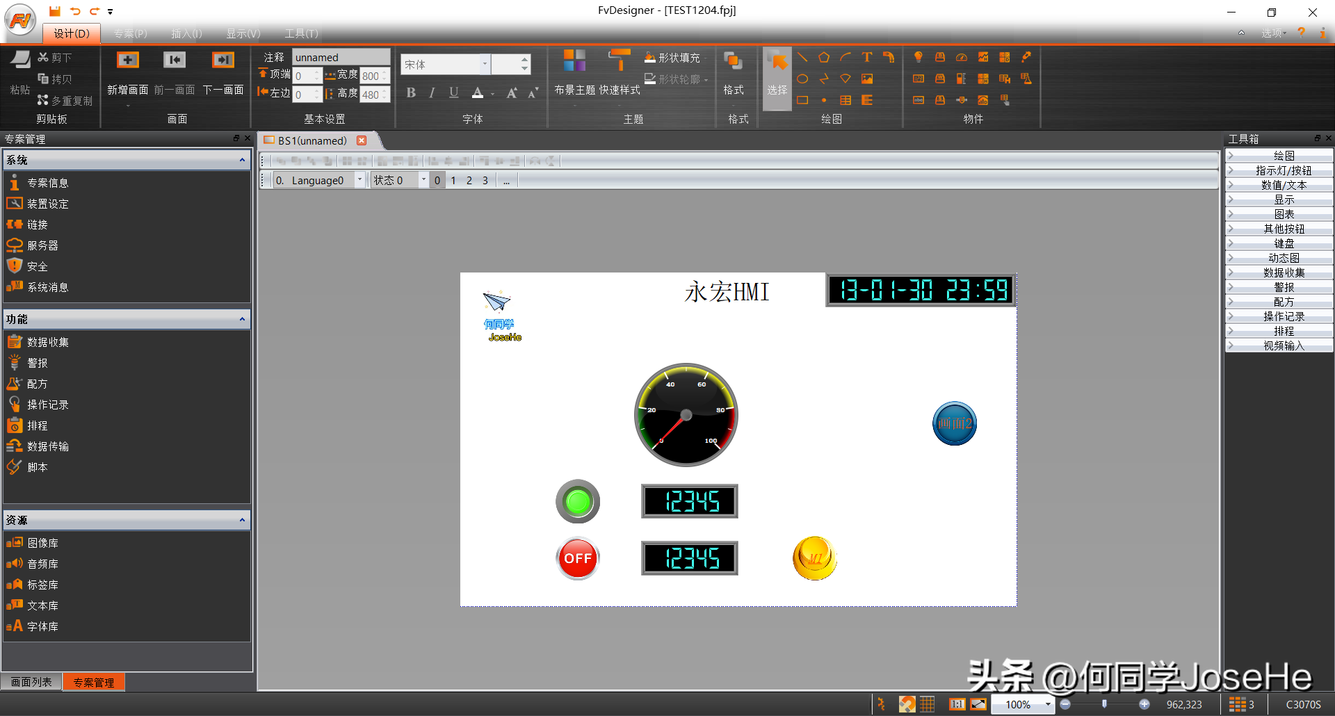 使用触摸屏软件,无非就是对控件进行使用。触摸屏常常有按钮、指示灯、图片显示、数值输入、数值显示、画面跳转等控件,本文截图中使用了其中的几种控件,均为系统默认状态,通过截图的对比,能看出软件用户界面的风格,一定程度上能反映软件设计师的审美能力。默认的好看的控件外观有利于节省工程师组态的时间,避免在触摸屏界面美化上花费过多的时间。