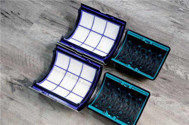 这款戴森空气净化风扇TP04的滤网以及拆卸方式都跟以往的机型都不一样,它不仅采用了双层滤网设计,一层是活性炭滤网、一层是HEPA滤网。其中,黑色的是活性炭滤网,它主要的作用是吸附和分解空气中的有害气体,而白色的则是HEPA滤网,它是由10米长的HEPA滤网经过264次折叠制成,能够轻松将空气中大部分的PM颗粒物进行过滤,过滤效率达99.95%,小至的颗粒物。