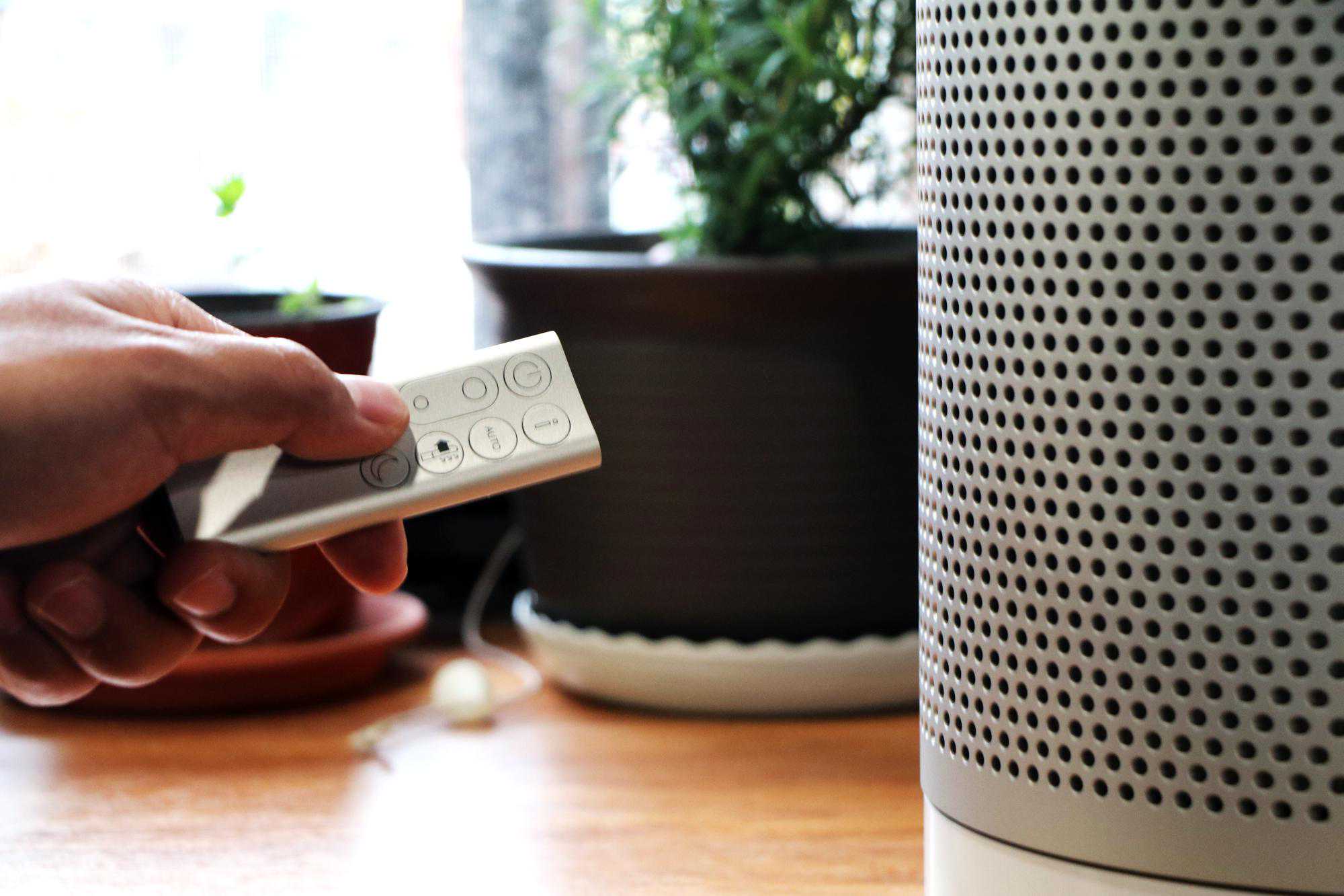 戴森空气净化风扇TP04配有一个银色的遥控器,尺寸很小,周边有圆弧过渡,握持感非常不错。控器上的按键均为圆形和椭圆形设计,保持了和机器有一致的设计方格。而且还有一点非常人性化,这个的遥控器可以磁性吸附在机身出风口顶端,完全没有那种突兀感,这样也不用担心找不到遥控器的问题了。