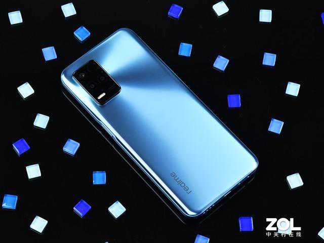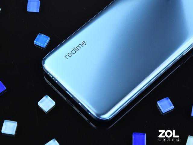 realme真我V13提供了两种机身配色选择,分别是烟雨灰和天青色,本次上手的是天青色配色的版本。realme真我V13天青色版的机身钩盖采用了丝印、亮银镀膜、高光淋涂等多种复杂的工艺实现了具有放射状线性光效的亮面背壳视觉效果。