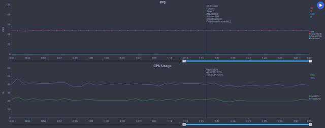 在主流游戏测试中,根据使用PerfDog记录的游戏画面帧率数据显示,realme真我V13在运行热门手游《王者荣耀》时,即使在超高分辨率和高帧率的模式下,都可以实现60帧的水平稳定运行。