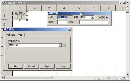 1)定位变量:是与I/O硬件模块输入输出通道相关联的,或者与内存引用相关联的变量。例如:“启动电机”与输入模板通道%相关联,“启动电机”就是定位变量。
