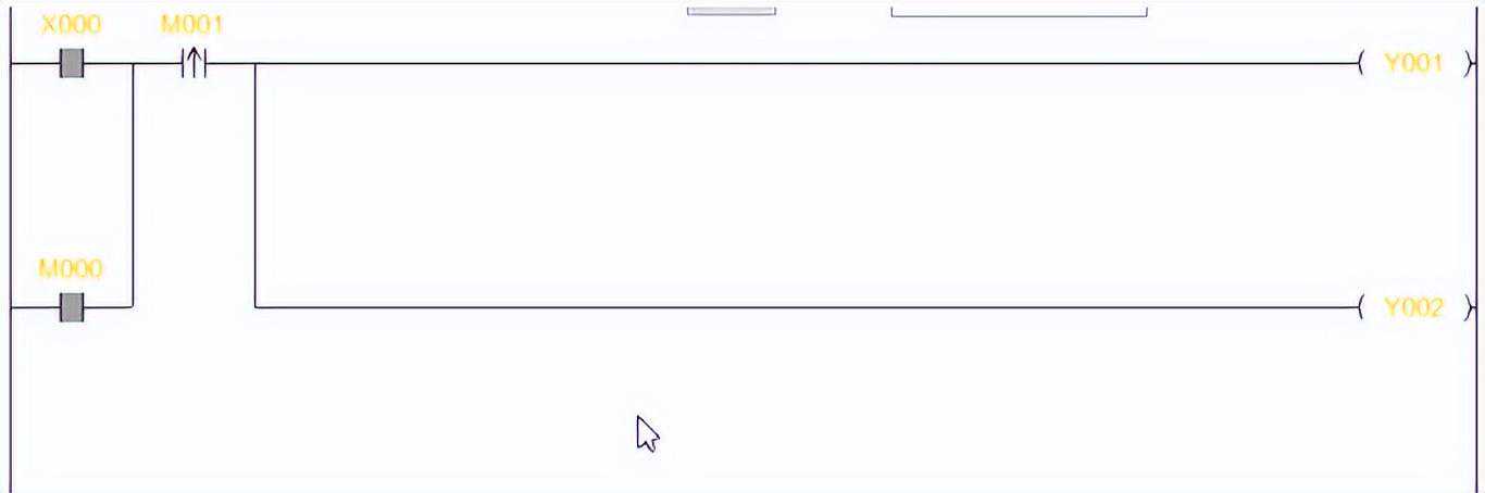 三、运行将上面编译出来的PLC指令,输入到PLCCore,使用解析运行的方式来模拟PLC运行。图中灰色表示元件导通,双击元件可以改变元件状态,如果双击M001导通,则Y001和Y002导通一次。