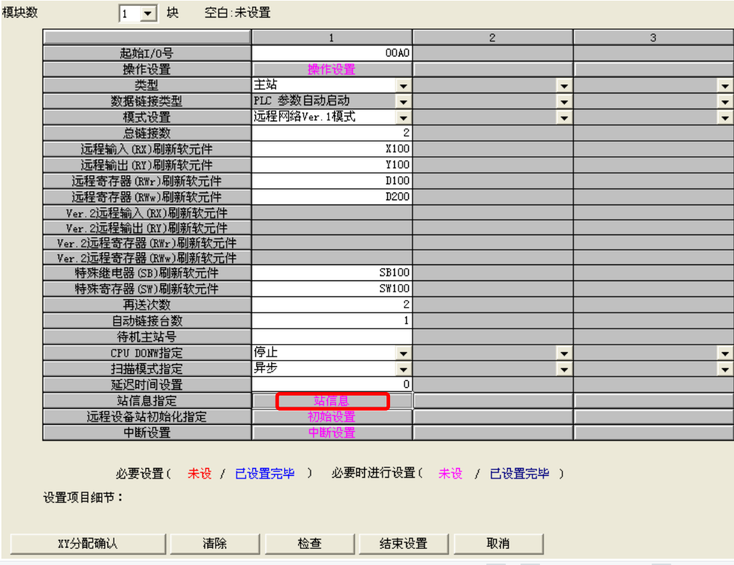 首先需要在主站设置网络参数和自动刷新参数,步骤如下:
