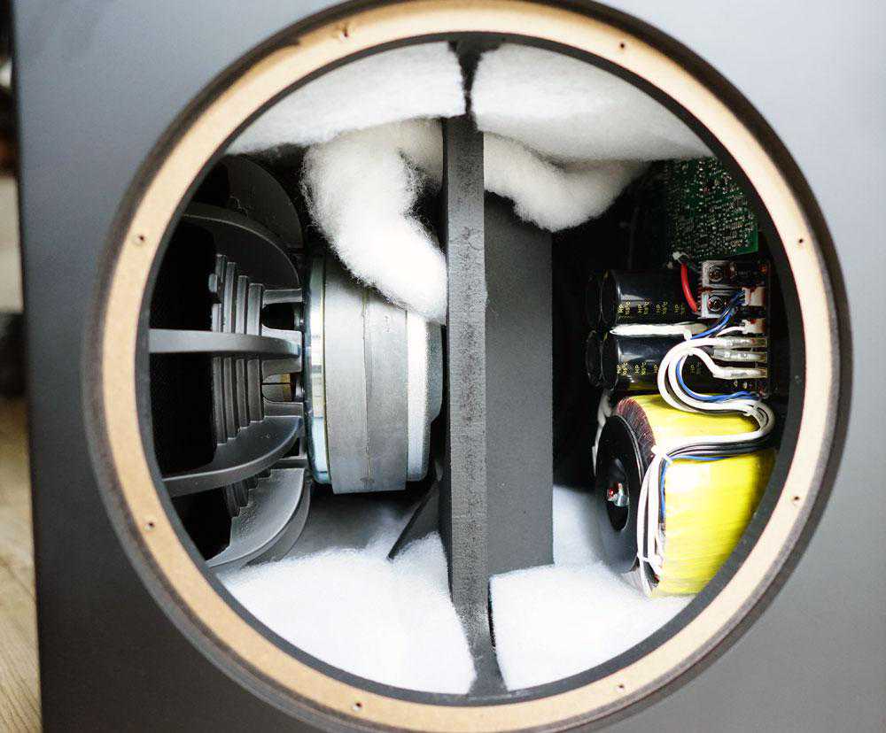这是因为SUB24的箱体和主动单元尺寸都比较小。而带有弹波的碗盆相对于平面的无源辐射器,它能推动更大量的空气,让SUB24得到更多的能量。