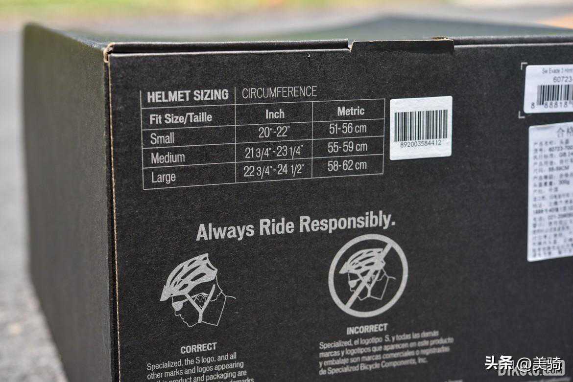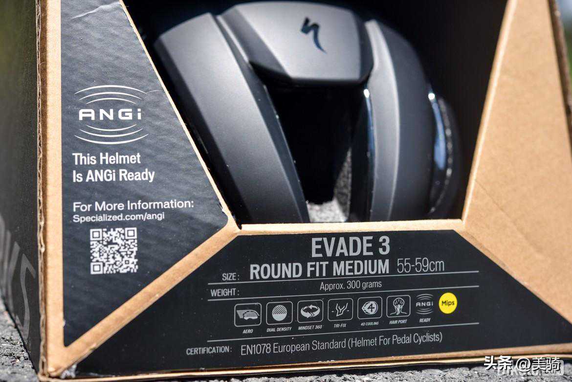 包装上简洁的图文介绍了产品特点。本次评测的S-WorksEvade3为亚洲版M码,通俗讲就是偏圆版本,标称约300克,实际重量290克,对于一个看起来相当敦实的气动头盔来说不算重。