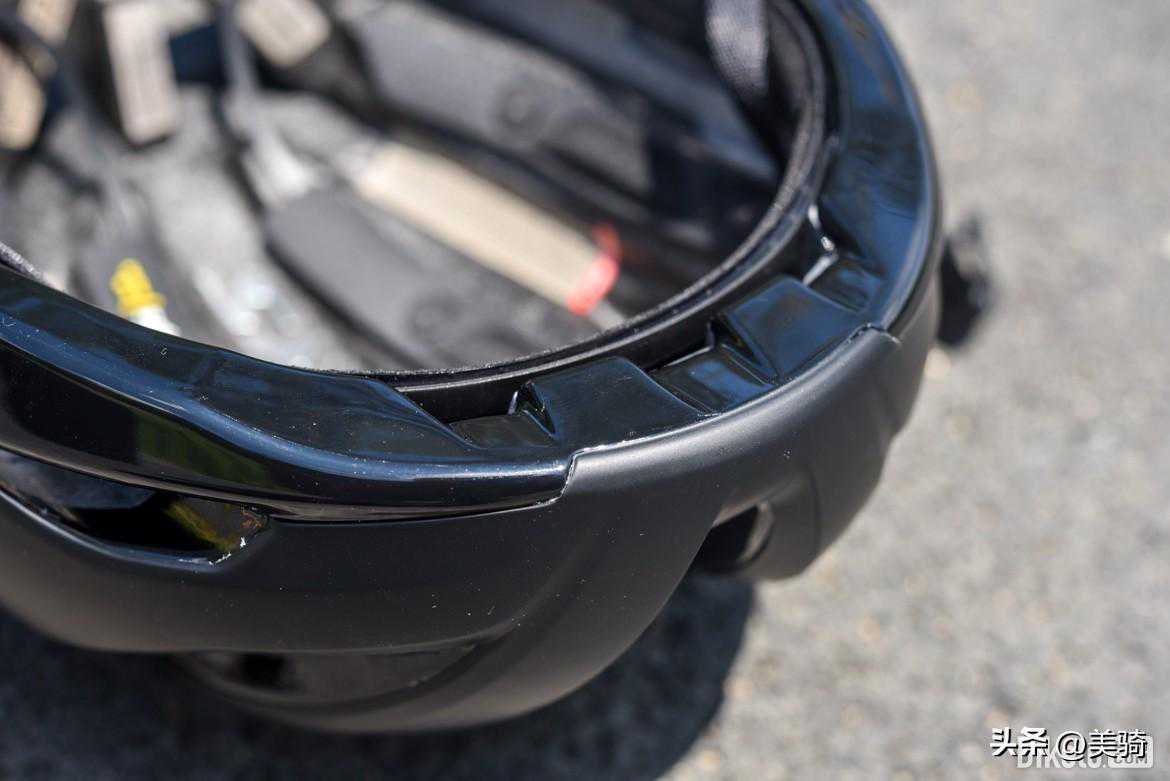 过去常有人吐槽S-Works头盔外露的EPS泡棉,而前后露出的恰好是深色低密度泡棉,使用时间一长难免产生各种痕迹,显得不美观。在S-WorksEvade3上,情况得到改观,头盔底部加入包边,保护内部EPS泡棉的同时获得一定的导流效果。