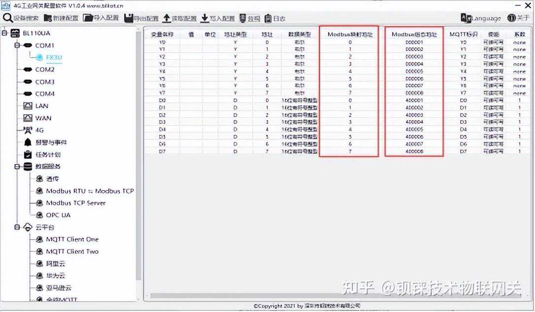 工业智能网关BL110采集三菱PLCFX3U接入ModbusTCPServer云平台