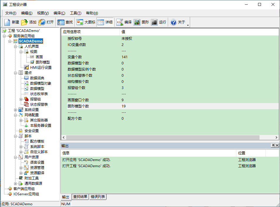 使用开发的系统称为应用,一个完整的应用一般包含以下部分或全部内容:IO设备、IO采集点、图形界面、动画链接、趋势曲线、报警和事件、历史记录、数据库、WebServer等部分。