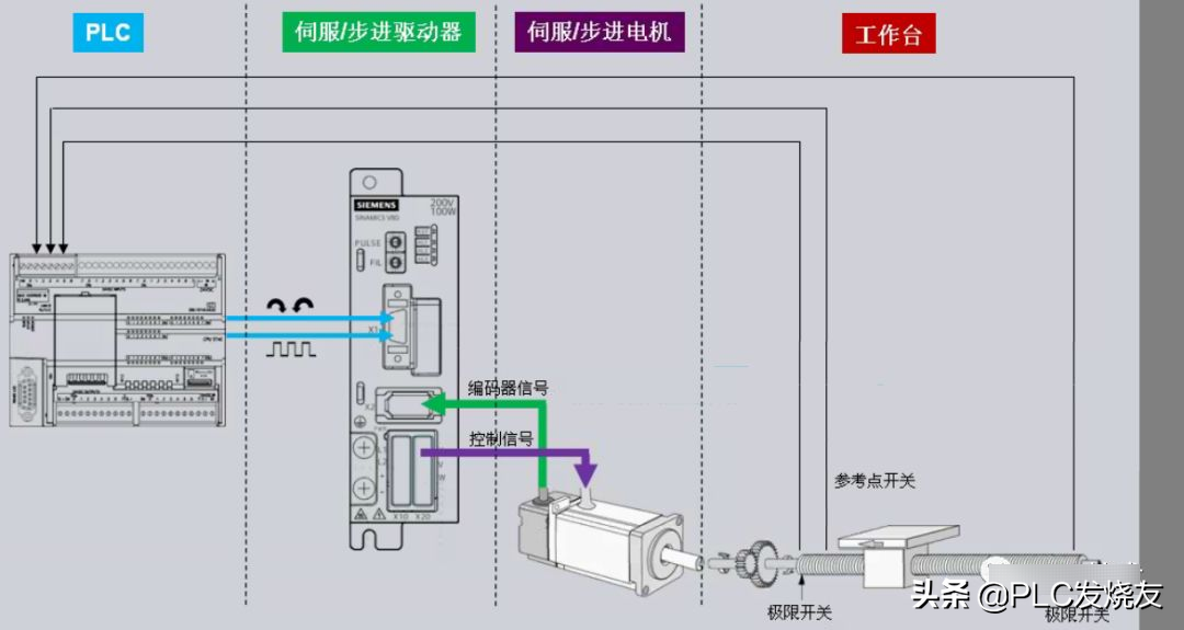 PLC控制电机的两种方式:一种是采用通信控制变频器;另一种是高速脉冲输出的方式控制伺服电机(此种方式只支持晶体管型CPU)