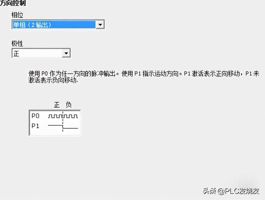 (2)单相2输出:P0发脉冲,P1作为方向信号(通常使用这种模式)
