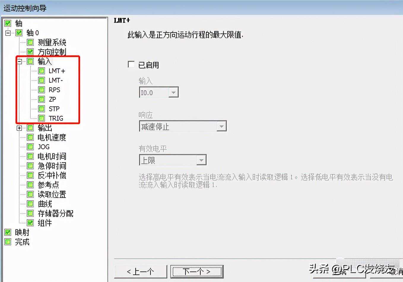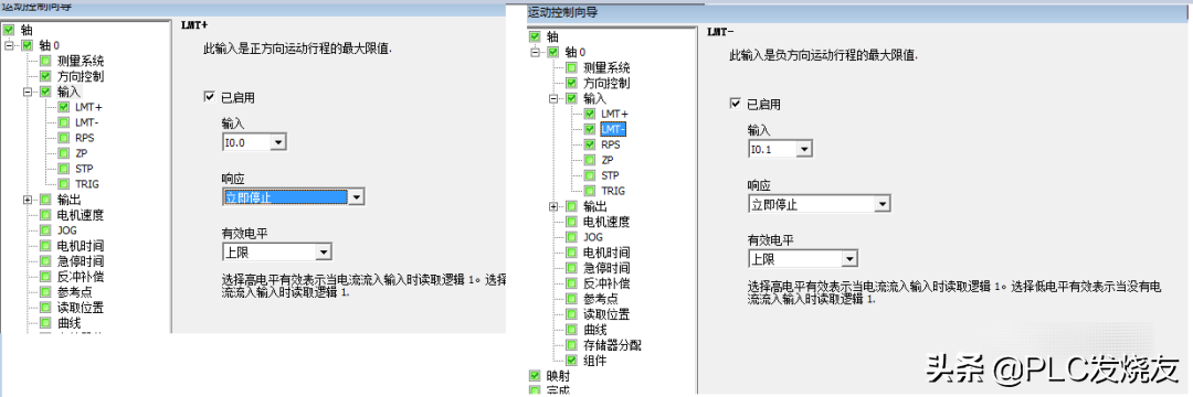 LMT+/-表示运动旋转的最大极限位,“+”表示正方向的极限位;“-”反方向的极限位