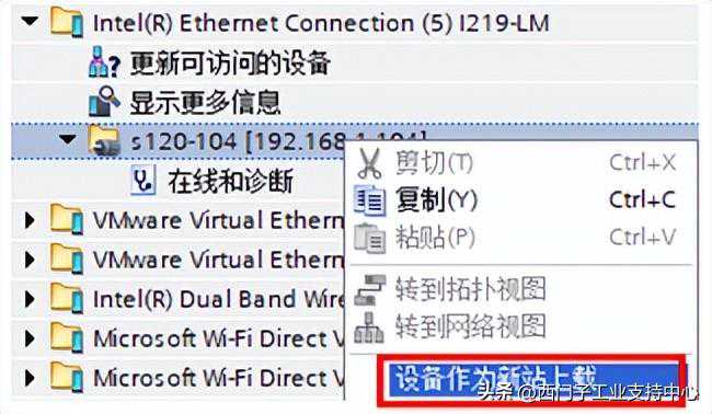 刷新“更新可访问的设备,出现s120-104[oss.nei.47466.com]的设备,右键选择“设备作为新站上载”: