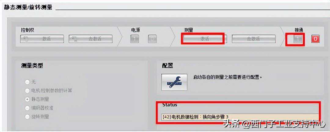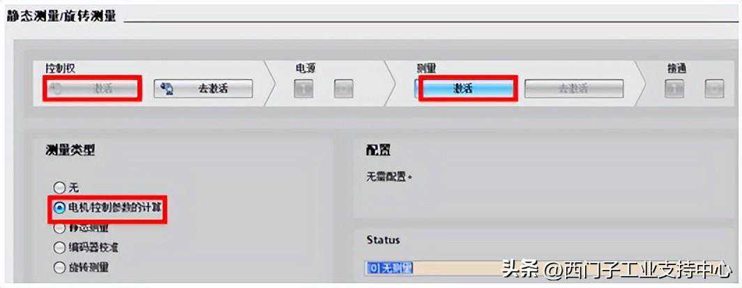 双击“静态测量/旋转测量”,获取控制权。测量类型选择“电机/控制参数的计算”,激活测量: