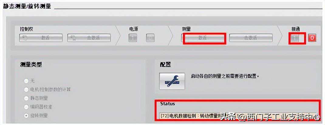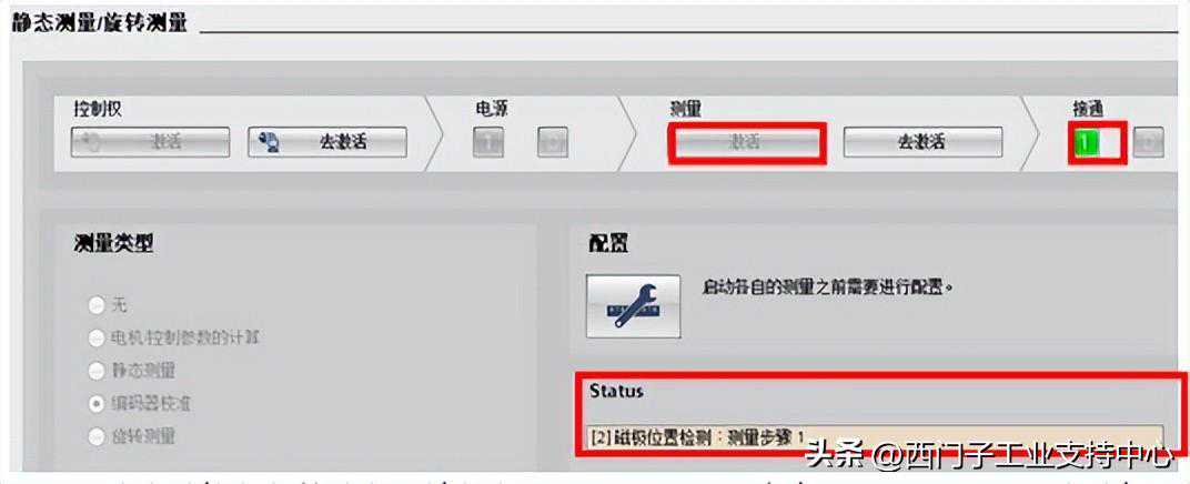 激活测量并接通驱动,在“Status”中查看测量的状态: