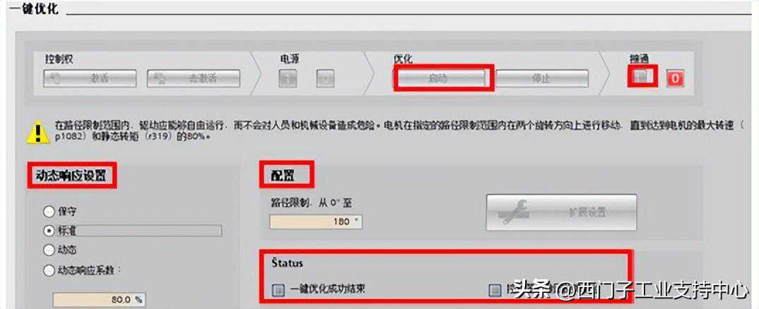 启动优化并接通驱动,在“Status”中查看测量的状态,完成一键优化。