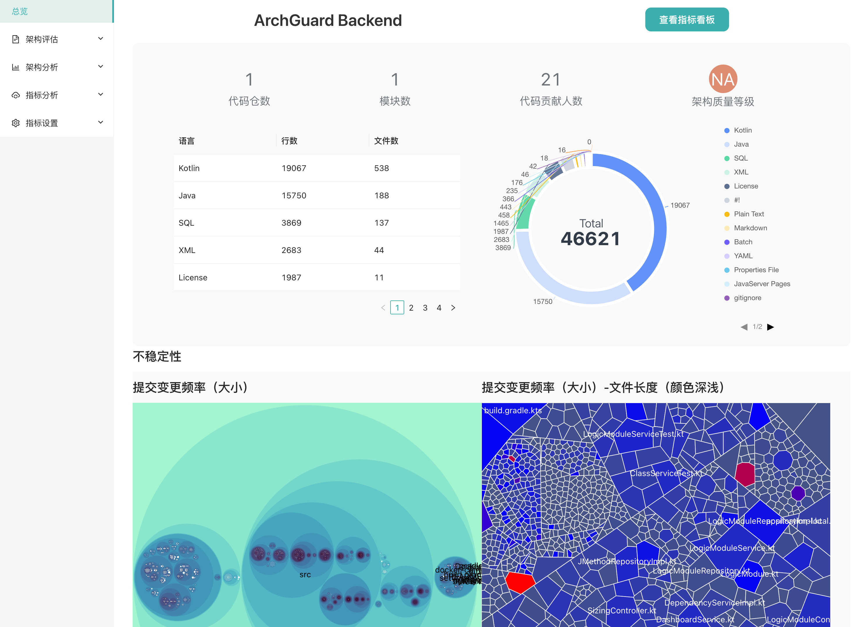 组件/模块在组件视图内,我们可以看到单个项目的总体情况,根据对应的代码提交历史,不稳定代码模块: