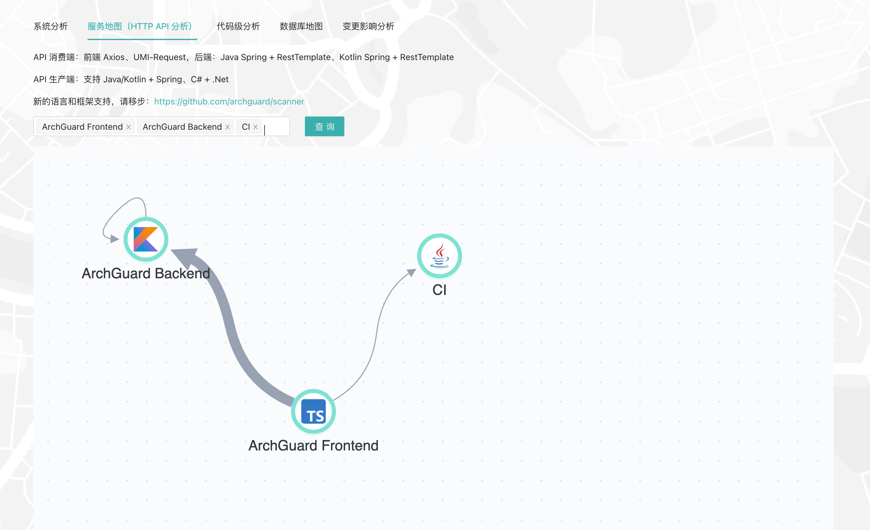当前,ArchGuard可以支持Spring、RestTemplate、Axios、UMI-Request等几种有限的API调用识别。