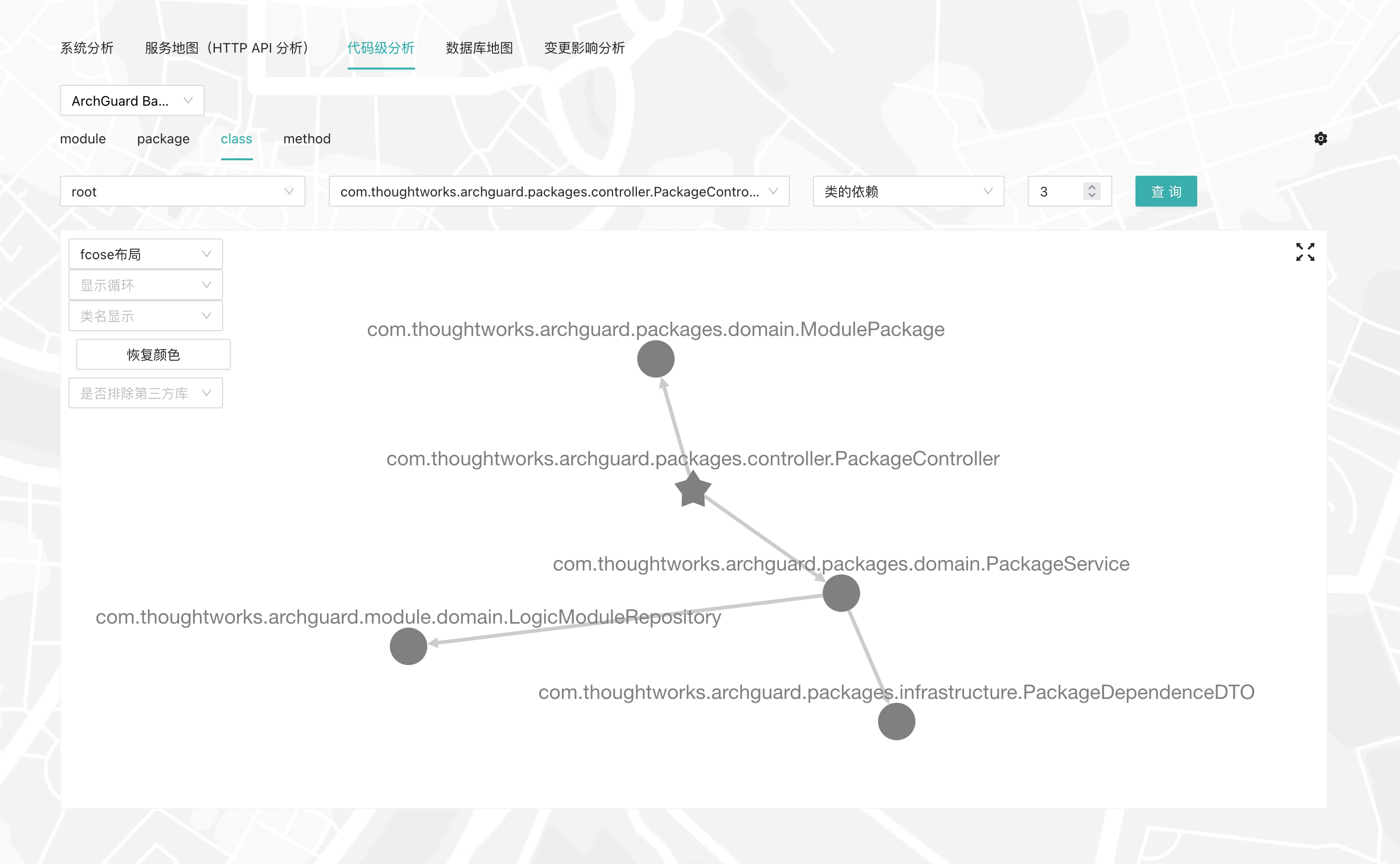 代码分析对于开发团队来说,它们可以在ArchGuard上查看项目的模块、包、类、方法之间的依赖关系: