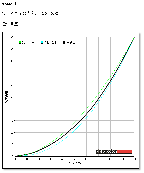 在Gamma曲线的测试环节中,下面两条线已基本重合,这说明此款显示器的Gamma曲线是不错的。