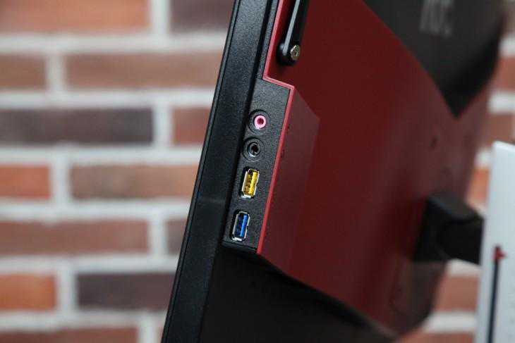 显示器的右下测还配备了两个接口,方便接驳键盘鼠标,一个(通过接驳串联主机,接通机身所有USB接口),还有一个电源接口。