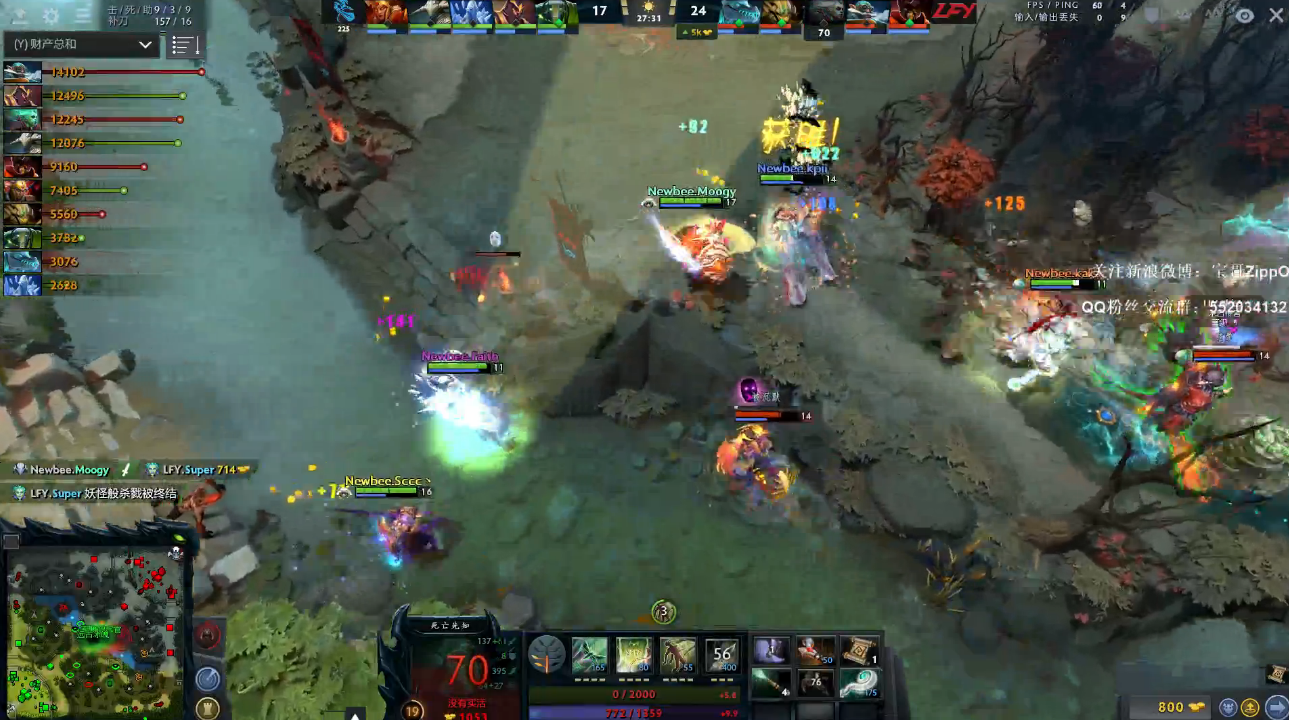 27分钟,LFY三大哥全部BKB在手,在飞机空大之后,军团大招先手DP,但是被DP开出BKB。击杀DP的NB用掉太多技能和输出,飞机和末日开始收割战场。经济领先达到1W。