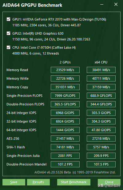 然后随便跑跑分看看,首先是AIDA64的缓存成绩,Intel平台的内存延迟还是很ok的,65.9ns的成绩换成AMD平台的话需要3800的频率才能跑出来