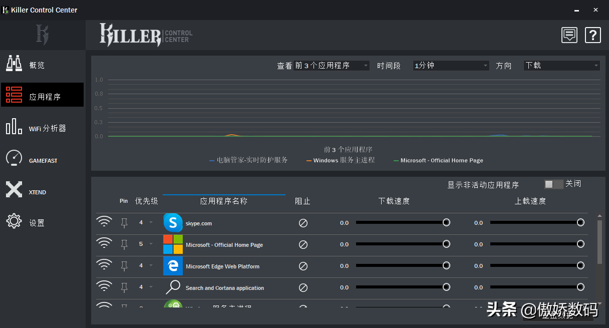第二个预装的就是killer网卡的管理程序了。可以直接看到网络使用状态