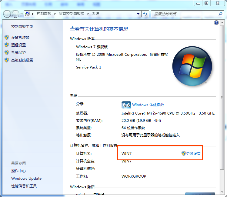 右键单击——【计算机】——属性——更改设置——更改