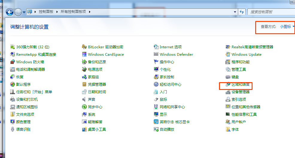 控制面板——区域和语言