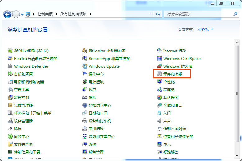 控制面板里找到