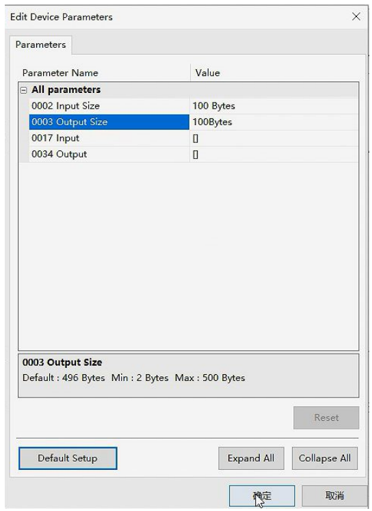 4.更改设备输入输出数据区域大小,注意设备最大和最小大小的限制。